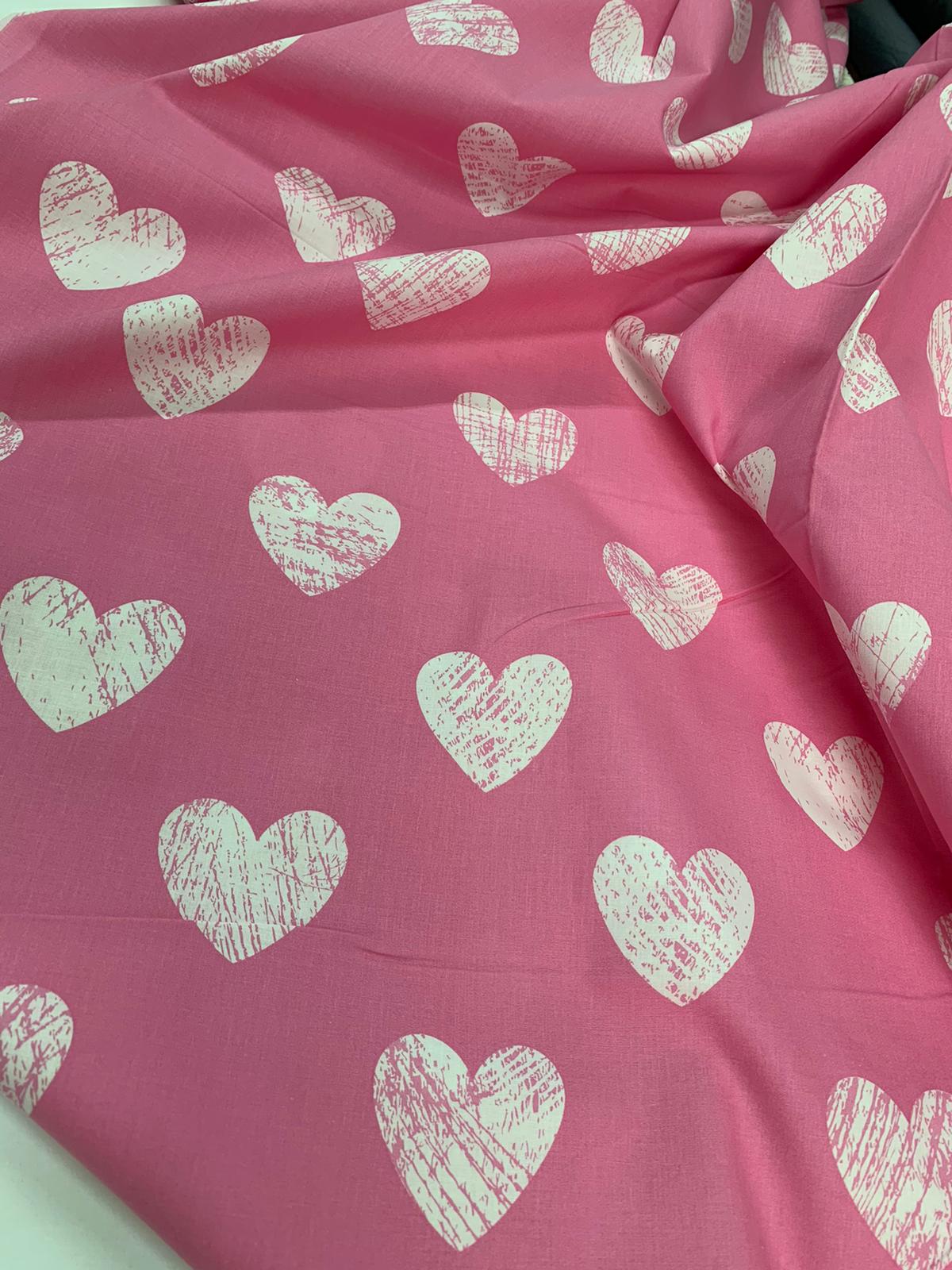 כותנה 250 לבבות לבנים עם קשקוש לבן עליהם על רקע ורוד מסטיק בהיר